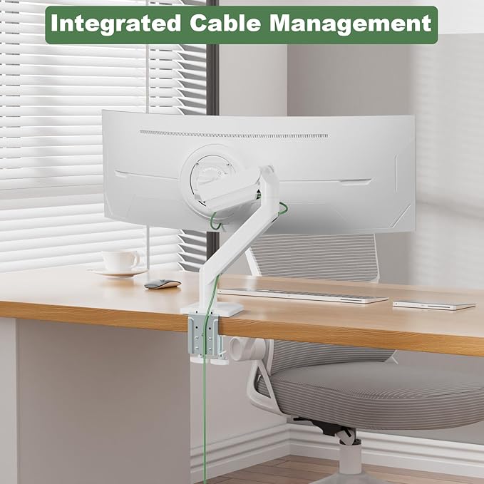 White Monitor Arm for 17”-57” Screens up to 55lbs, Premium Aluminum Ultrawide Monitor Mount for Samsung 49” Odyssey G9 and LG, VESA 75/100mm