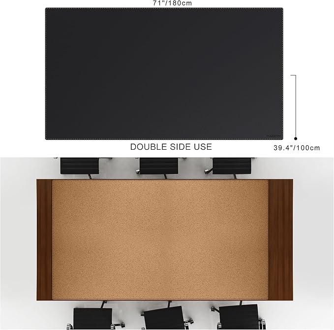 MAIDERN Leather Desk Mat Large XL, 70.8” x 40” Reversible Office Desk Pad Mat, Cork & Leather Large Mouse pad for Desk, Waterproof Computer Desk Mat for Gaming Home Office (Black)