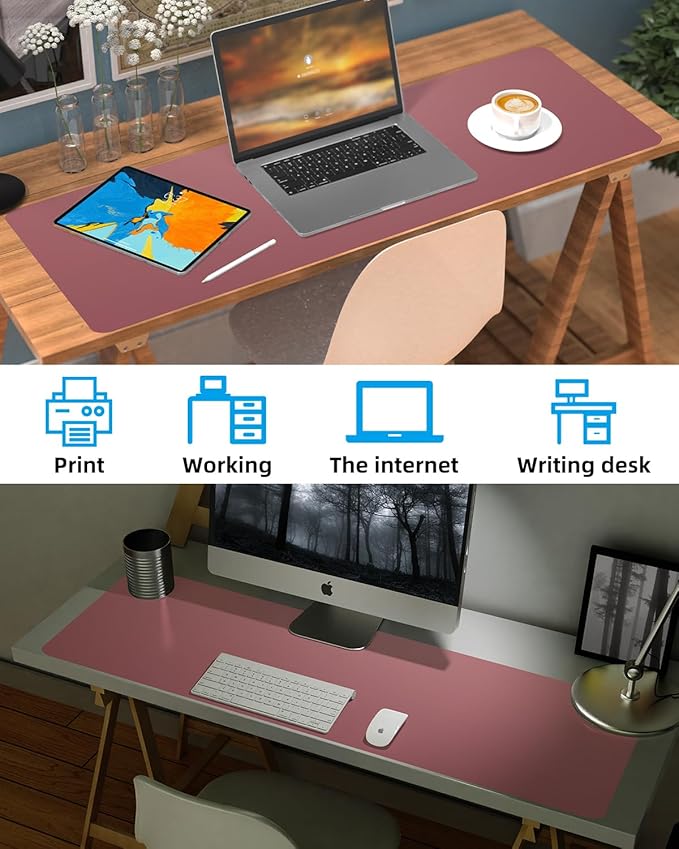 Leather Desk Pad Protector, Large Desk Mat, Mouse Pad, Non-Slip PU Leather Desk Blotter,Desk Cover mat,Desk mat for Keyboard and Mouse,Mat for Office&Home (Rose Purple, 48" x 17")