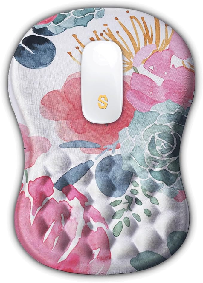 Ergonomic Mouse Pad with Wrist Rest Support, Massage Design Mouse pad Relief Carpal Tunnel Pain, Entire Memory Foam Non-Slip Mouse Pad, Computer Mouse Pads for Wireless Mouse Pad, Beautiful Flowers
