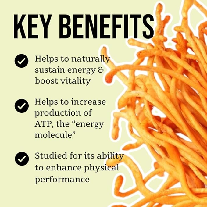 - Ethically Sourced Fruiting Bodies: We use 100% cordyceps mushroom fruiting bodies, never mycelium on grain. Wildcrafted from the high elevations of the Himalayas and lab-grown in the US under strict safety standards, our organic cordyceps offer unparalleled purity and potency. Join a brand that’s dedicated to sustainable, ethical mushroom sourcing and production.
