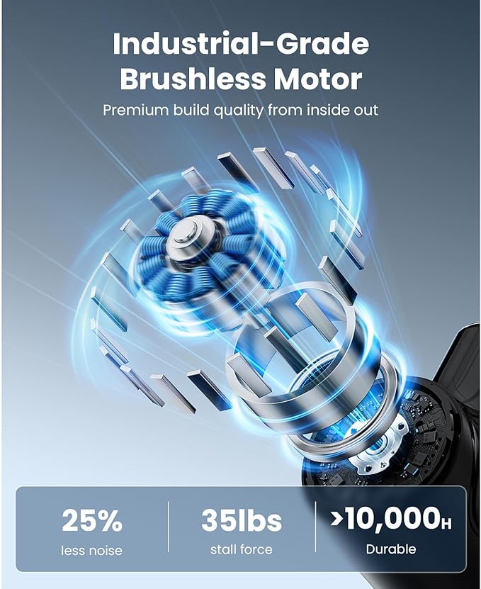 - True Deep Tissue Massage: With a 9 mm amplitude and five adjustable speeds (2000-3000 RPM), the M7 Plus delivers a powerful, customizable deep tissue massage. The latest brushless motor ensures a quiet yet effective experience, allowing you to adjust the intensity to your comfort level. Its professional-grade performance makes it an excellent choice for relieving muscle soreness and tension.All these features make it a great gift choice.