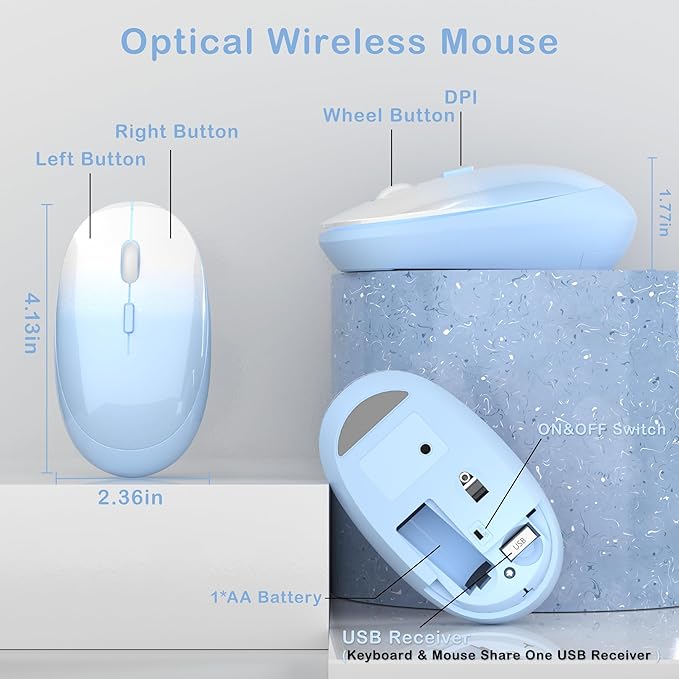 - WITH POWER SWITCH: Keyboard and mouse come with separate ON/OFF switches for power saving and independent use. keyboard requires 1 *AA battery, mouse requires 1* AA battery (Batteries not included package)