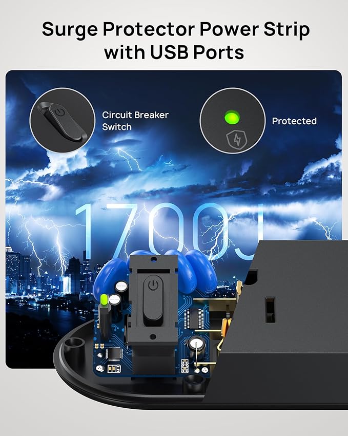 - Power Strips with Surge Protection: This ETL-listed surge protector is made of top-grade UL94 V-0 flame-retardant material, has 1700J surge protection, and comes with a circuit breaker switch that controls the AC power to protect your devices from potentially damaging power surges
