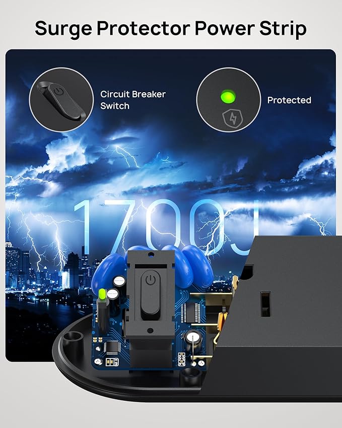 - Power Strips with Surge Protection: This ETL-listed power strip is made of top-grade UL94 V-0 flame-retardant material, has 1700J surge protection, and comes with a circuit breaker switch that controls the AC power to protect your devices from potentially damaging power surges