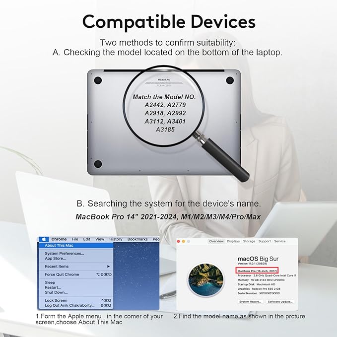 - Compatible Phone Models : MacBook Pro 14 Inch (2021, 2022, 2023, 2024, M1, M2, M3, M4, Pro, Max), Model:A2442, A2779, A2918, A2992, A3112, A3185, A3401 MacBook Pro 14 Inch (2021, 2022, 2023, 2024, M1, M2, M3, M4, Pro, Max), Model:A2442, A2779, A2918, A2992, A3112, A3185, A3401