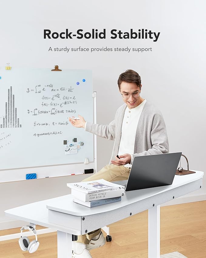- Smart, Functional Features: The curved ergonomic edges of the rising desk make working around the tabletop more comfortable without accidental bumps and damage, while 4 height preset buttons provide one-touch adjustment between your go-to sitting or standing positions.