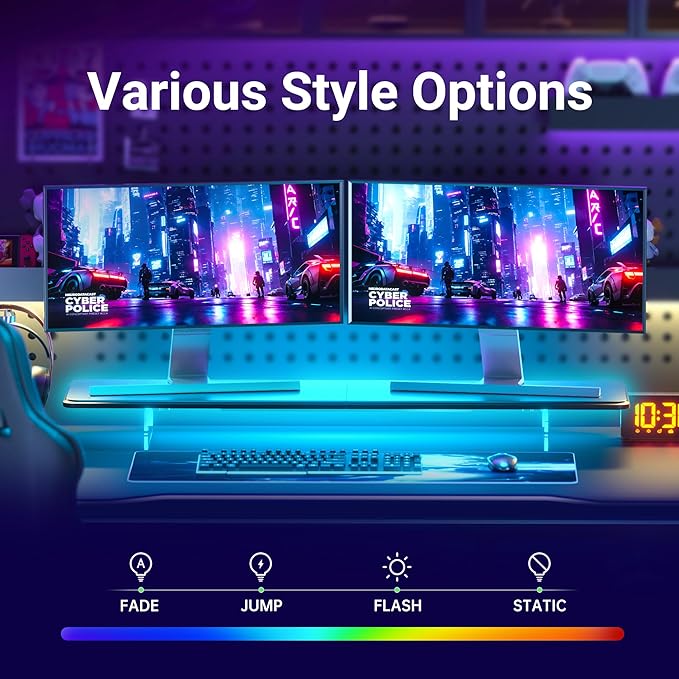 - 【Colorful Lighting with 24 Color Options】Our monitor stand features a 1-meter LED light strip that supports 24 colors and 4 lighting effects. Easily adjust the color and mode to create the perfect work or entertainment ambiance.