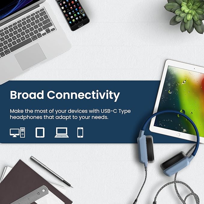 Brenthaven Headphones Wired | USB C On-Ear Rugged 2 Adjustable Headphones with Long Tangle Free Cord - Lightweight Durable and Drop Tested School Supplies for Kids Travel and K-12 Students - Blue