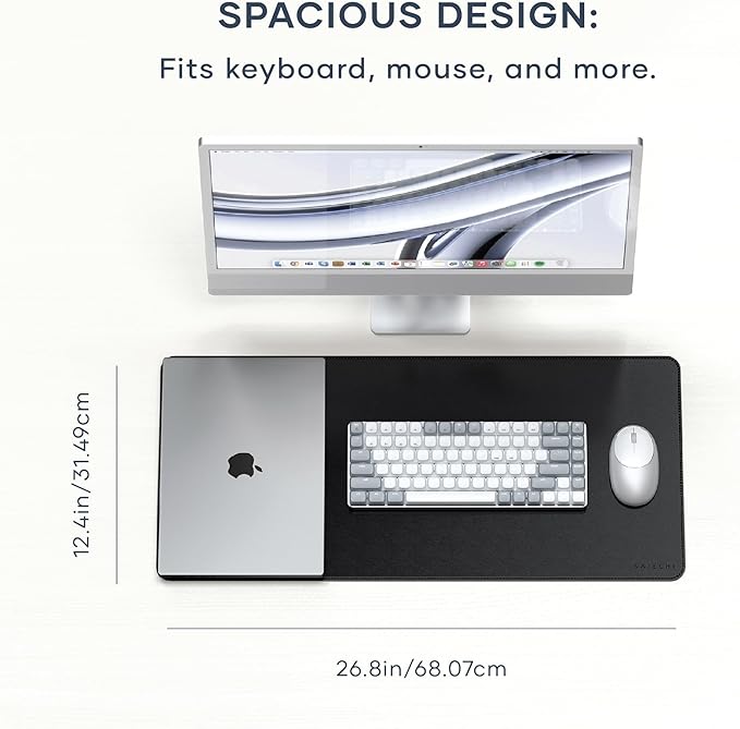 Satechi Vegan Leather Desk Mat, Large Mouse Pad Scratch and Water Resistant, Easy to Clean, Desk Pad for Office and Home, 26.8” x 12.4” x 0.1” - Black