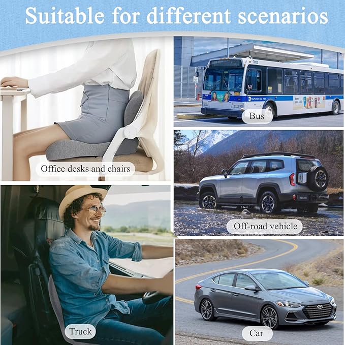 - 👍【 Upgrade Ergonomic Design 】Say goodbye to back and leg pain during long drives! The unique ergonomic and orthopedic design of our seat cushions can help relieve sciatica, pelvic, cheekbone or tailbone pain while driving. Enjoy reduced fatigue and numbness while staying comfortable on the road.