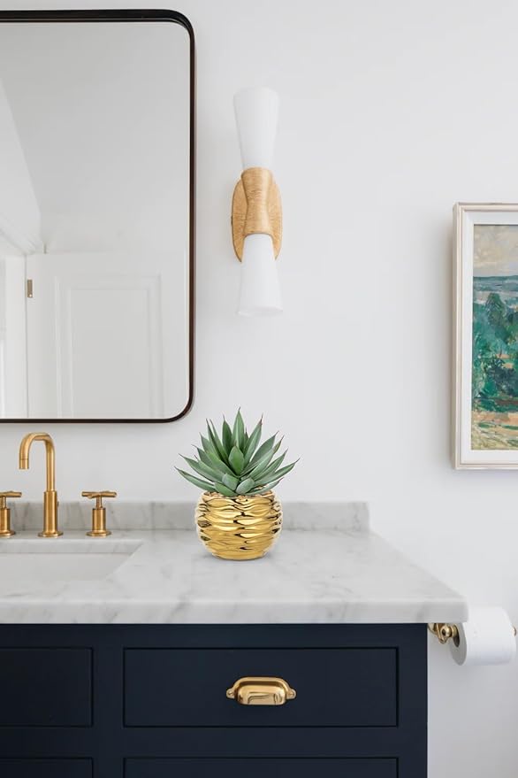 Briful Artificial Frosted Aloe Plant in Gold Ceramic Pot – 8.3” Tall Faux Succulent Agave with Decorative Pebbles – Realistic Indoor Decor for Office, Shelf, Desk, Living Room