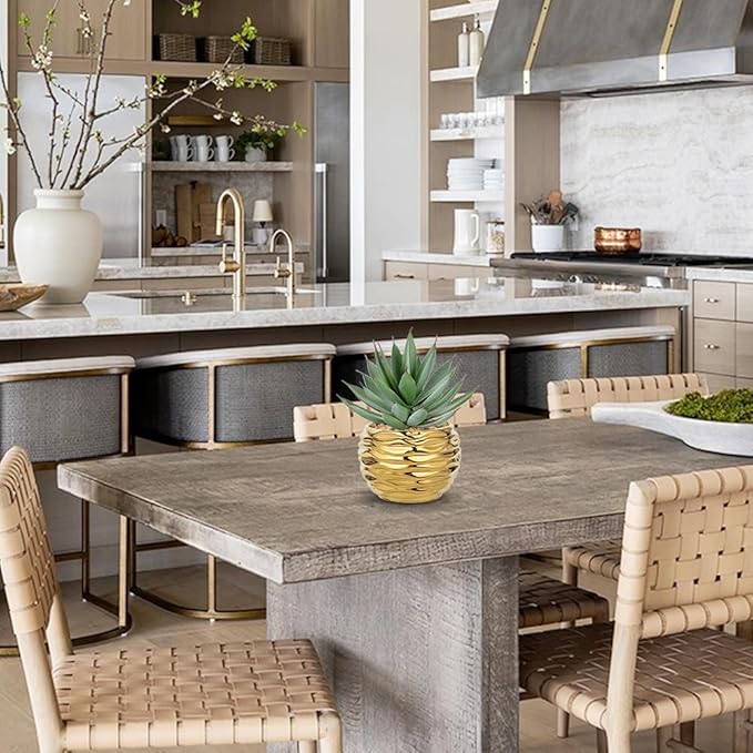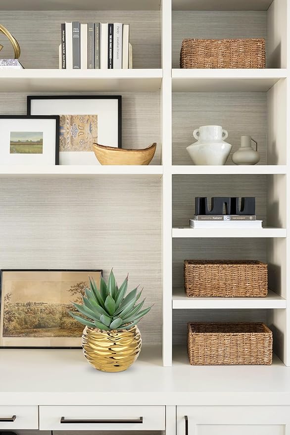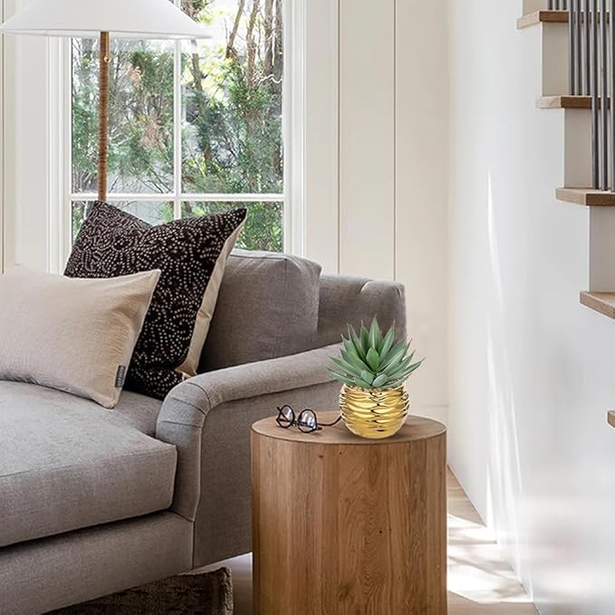 - ELEGANT GOLD CERAMIC POT – Comes in a high-gloss, sculptural ceramic planter (4.7” wide x 3.7” tall) with a modern ripple texture, adding a luxurious accent to any tabletop or shelf.