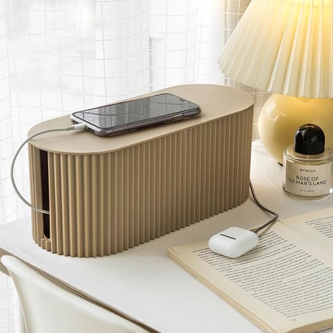 Cable Management Box,Desk Cord Organizer with Groove Cover,Plastic Cord Hider Box,Large Cable Box Organizer,Power Socket Management for TV/Computer/Router/Games Console Cable Storage (Milk Tea)