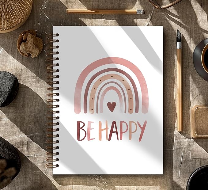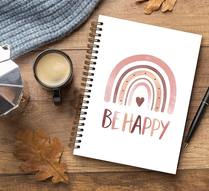 Be Happy Motivational Notebook,Boho Rainbow Notebook Journal,Inspirational Motivational Gifts for Women,Positive Affirmation Gifts Preppy Notebook,Boho Office Supplies,Spiral Notebook 5.5x8.3