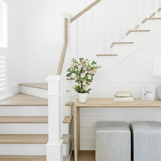 - 🌷【Premium Materials & Unique Design】Artificial rose flowers petals and leaves are made of high-quality silk with a real touch and clear veins. Also, the flower pots are made of plastic, its surface covered with black mud. Beautiful silk flowers amid lush green fall leaves are soft to give you a feeling like the real plant, soothe your mood!