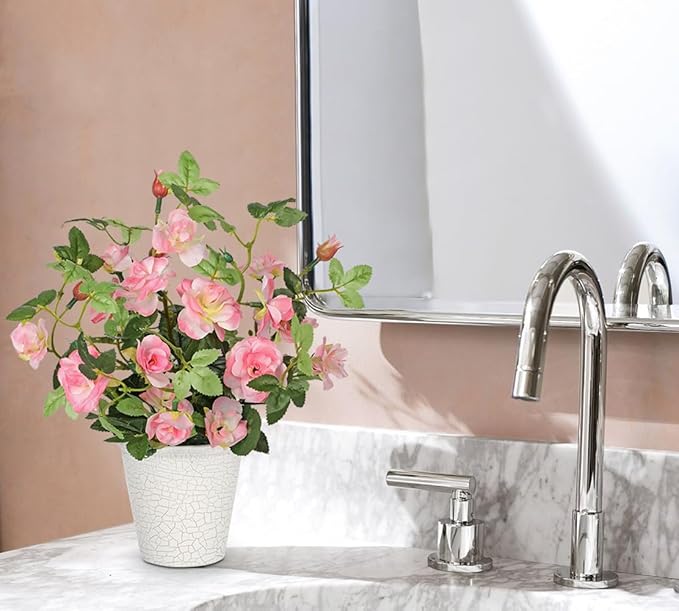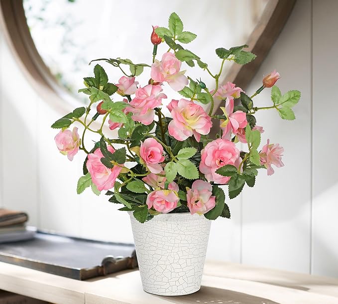 - 🌷【Premium Materials & Unique Design】Artificial rose flowers petals and leaves are made of high-quality silk with a real touch and clear veins. Also, the flower pots are made of plastic, its surface covered with black mud. Beautiful silk flowers amid lush green fall leaves are soft to give you a feeling like the real plant, soothe your mood!