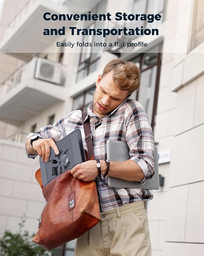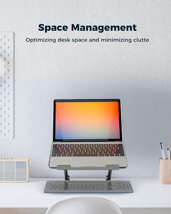 - Convenient on the Go: This foldable laptop stand easily collapses into a compact size for convenient storage and transport, making it a great travel companion if you need to work from a coffee shop or a classroom. It frees up room for essentials like phone, coffee, sticky notes, pens, open book, or notebook, ideal for limited desk space, etc. An excellent gift for your friends, colleagues and family