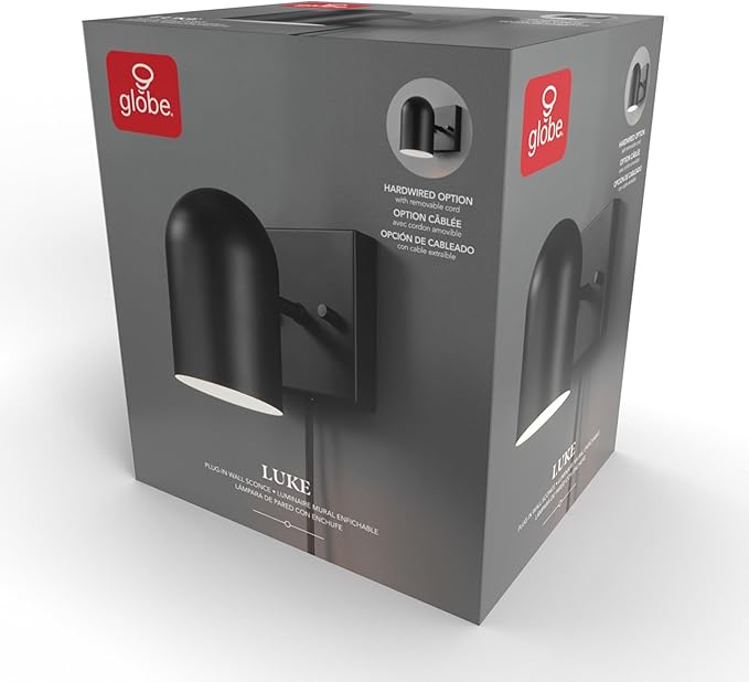 GLOBE Electric 65000098 1-Light Plug-in or Hardwire Wall Sconce, Matte Black, 6ft Braided Fabric Cord, in-Line Rocker Switch, Modern Lighting for Apartments or Renters, Lights for Living Room