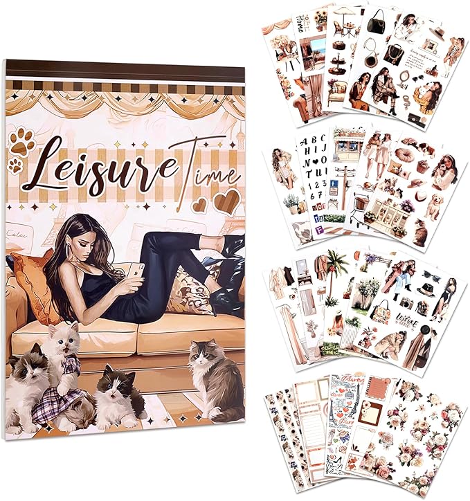 - 3. The scrapbook sticker book includes PET clear stickers, original white background stickers, and washi tape sheet, all stick and adhere very well to the surfaces that they are placed on.