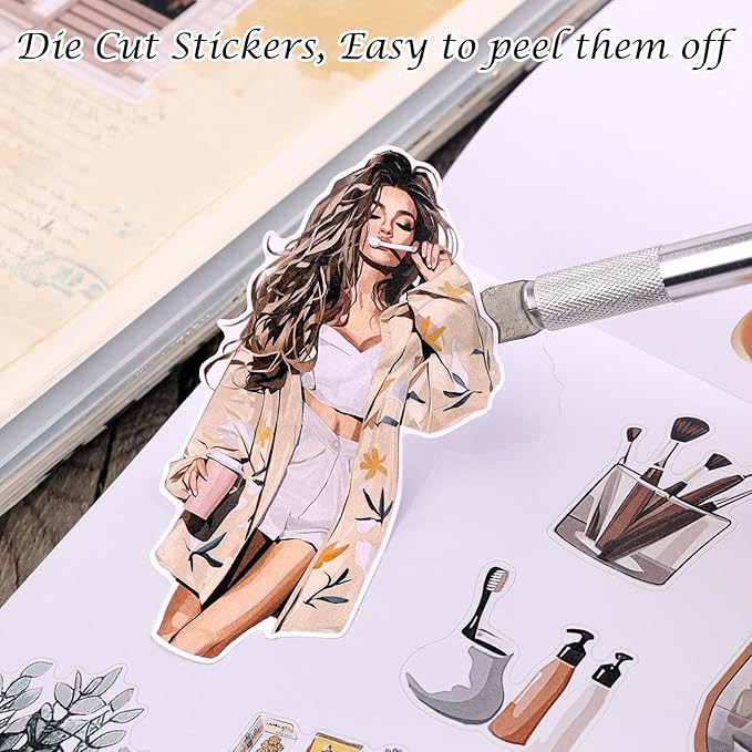AVECMOI Casual Themed Scrapbook Stickers for Women, Aesthetic Journaling Stickers with 251 Images, Paper & PET & Washi Tape Sticker for Planners, Bullet Journal, Mixed Media Art (Brown)