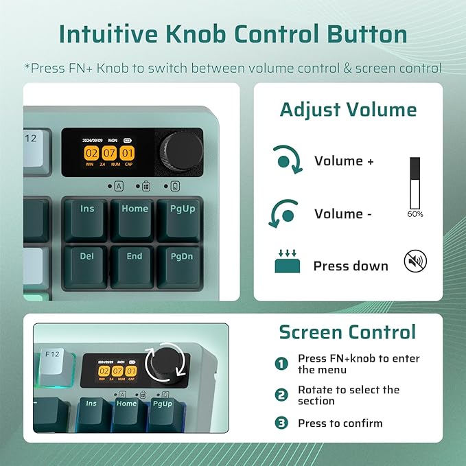 - Compact Screen, Infinite Possibilities — Elevate your control experience with our multifunctional display screen. Keyboard with screen could showcase GIF images, time, battery status, switch WIN/MAC layouts, adjust lighting effects, color, speed and monitor CPU status, etc.