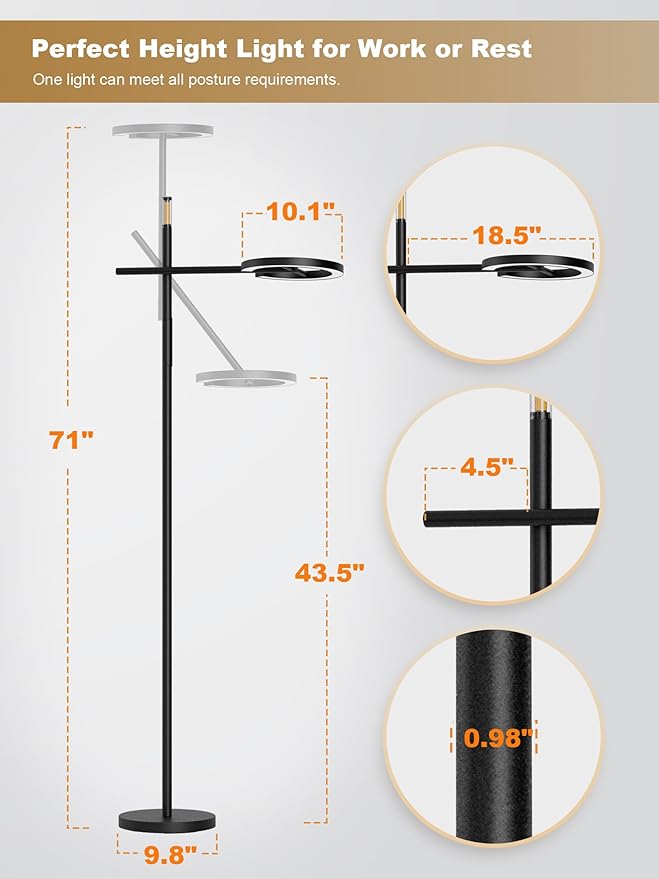 - 【Smart Alexa & App Control for Effortless Use】: Effortlessly adjust your light therapy experience hands-free with Alexa voice commands, seamlessly fitting this versatile lamp into your daily routine. Our modern, height-adjustable design primarily functions as a floor lamp, ideal for reading and providing comfortable illumination while delivering the soothing experience of a light therapy lamp. With our proprietary GLOWRIUM smart app, you can set timers, control lighting settings, and choose from preset modes or customize your preferences to suit your specific needs