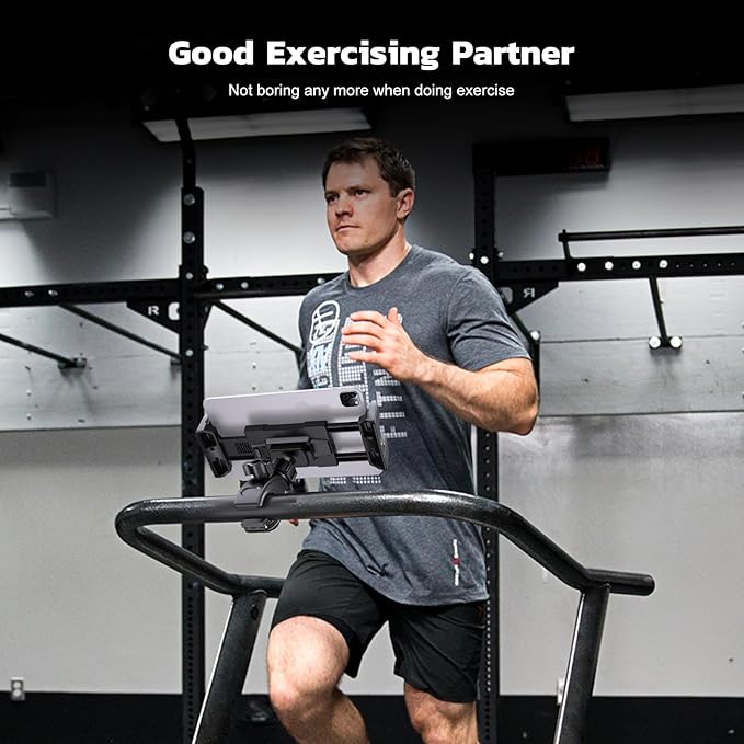 - 【Easy Installation & High Stability】Treadmill ipad holder requires no tools, installs in just 3 steps. Treadmill handlebar clamp features full-coverage soft silicone pads for device protection and enhanced grip, preventing scratches and ensuring no shaking or falling.
