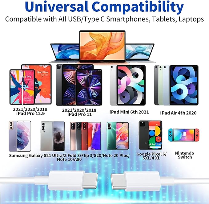 - 【6FT Extra Long & MFi Certified Cable】: Our USB-C Cable with the original MFi Chip. The original MFi Certified Smart Chip, ensures 100% high speed charge and data sync transfer of up to 480 Mbit/s. This 6FT(2m) C to C cable is suitable for different occasions. fast-charging for iPhone 17, iPhone Air, iPhone 17 Pro, iPhone 17 Pro Max. iPhone 16, 16Plus, 16 Pro, 16 Pro Max iPhone 15, 15Plus, 15 Pro, 15 Pro Max, iPhone 14/13/12/11/XR/XS Max, iPad Pro 12.9/11 inch, iPad, iPad Air, iPad mini, Mac Book Air 13 inch, Mac Book 12 inch, iPad Pro 11inch, AirPods, and USB-C devices.