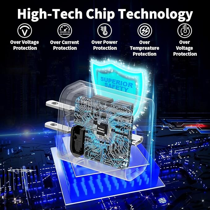 - 【Safty Charger for New iPad iPhone Airpods】: The Power Delivery Wall Charger for iPhone Certified by MFi, UL, ETL, FCC, CE, ROHS. USB-C PD adapter and Type-C to Type-C Cable will perfectly protect both your iphone/ipad devices also the brick/ cord against overheating, excessive current, short-circuit and overcharging. MFi Certified Cable comes with surge protection and other advanced safety features to keep your iPhone/iPad/Airpods battery safe, Maximize the life of your battery.