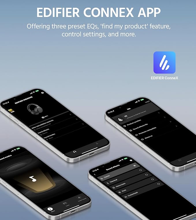 - [Customizable Settings]:There are three preset EQs in the EDlFlER ConneX App which also support custom EQs for a personalized listening experience.