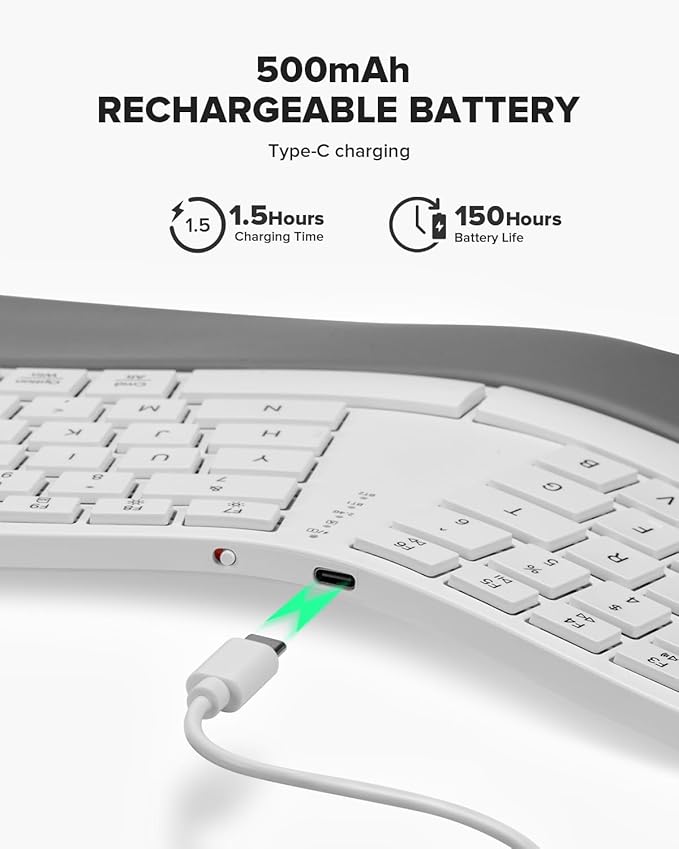 DeLUX Full Size Wireless Ergonomic Keyboard with Palm Rest, Ultra-Thin Split Keyboard, Bluetooth and 2.4G Connection, Rechargeable Battery, Natural Typing (GM909-White)