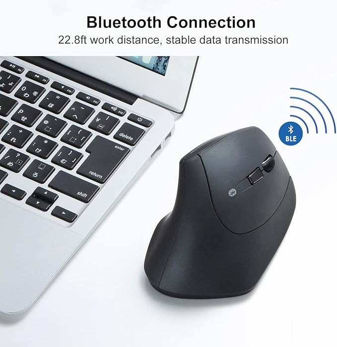 - Noiseless Click Buttons: The silent button is mounted on the left and right clicks and the side buttons. This wireless vertical mouse is suitable for late-night work and play, PC operation in quiet places such as public places and meetings.