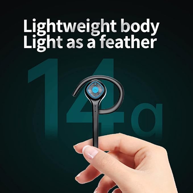IHAO Wireless Bluetooth Earpiece Headphone Dual Noise Cancelling Mic Painless Open-Ear Handsfree Headset Stereo Sound Left/Right Changeable Earhook Earphones for Driving/Business/Gym