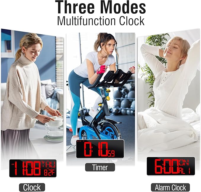 - 【Multifunction use】- TXL large digital timer clock has three modes to meet your various needs (Timer mode for count up and down, clock mode and dual alarm clock mode). Perfect for bedroom, gym, living room, kitchen, office, classroom, shop and etc.