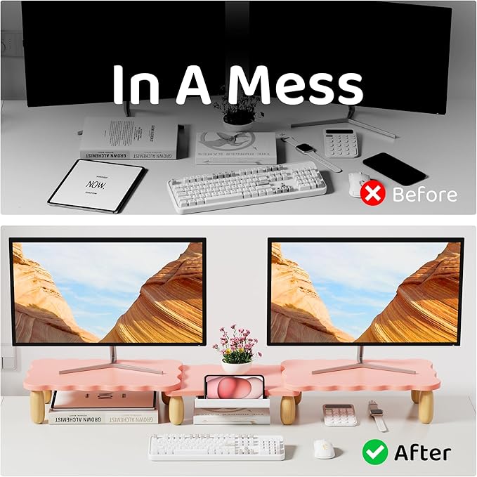 - Premium Construction - Constructed from high-quality, durable wood board, this riser is built to last. Its sturdy design ensures reliable support for monitors, laptops, and other devices, enhancing both functionality and longevity.