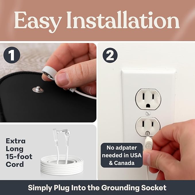 - SETUP IN JUST TWO STEPS: Effortlessly connect to the earth with our 2-step easy setup. Just plug the 15-foot cord into any outlet, and enjoy grounding benefits anywhere in your home.