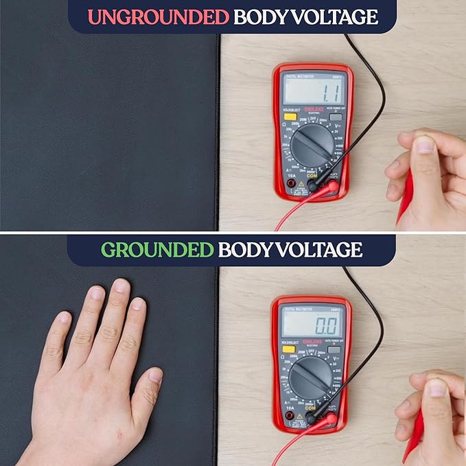 - STYLISH & LONG-LASTING: Designed for both function and aesthetics, our grounding sheet features a non-slip bottom and a sleek surface. Its three-layer construction, including a conductive middle layer, ensures durability and reliable performance.