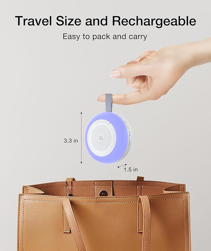 - 【Travel Sound Machine】 This portable white noise machine ensures better sleep wherever you go. It’s compact and lightweight—ideal for travel. With a strap and hook, attach it easily to strollers, car seats, or luggage. Perfect for car rides, walks, hotel stays, and business trips.