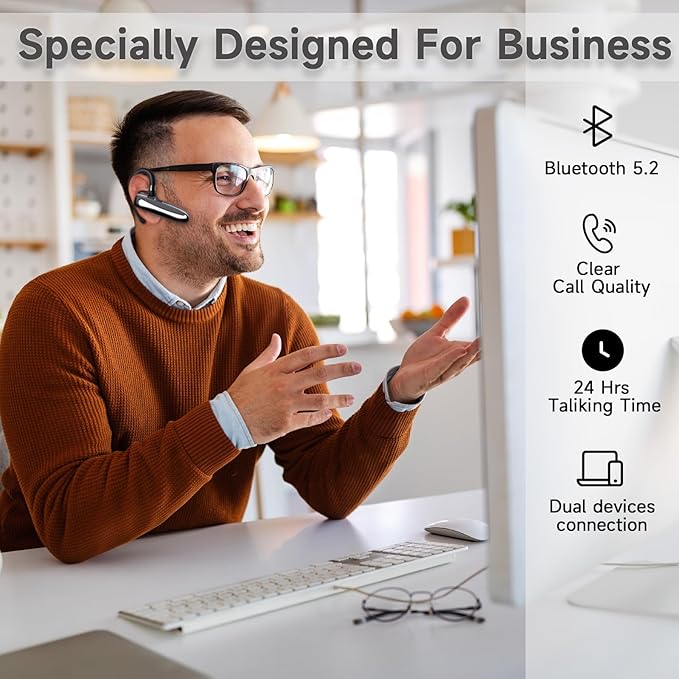 - 【Stable Pairing & Strong Compatibility】This office headset features stable pairing technology with exceptional compatibility, seamlessly working with all Bluetooth-enabled devices. Utilizing advanced wireless connectivity, it maintains a stable connection within a 10-meter range, allowing you to move freely without disconnection.