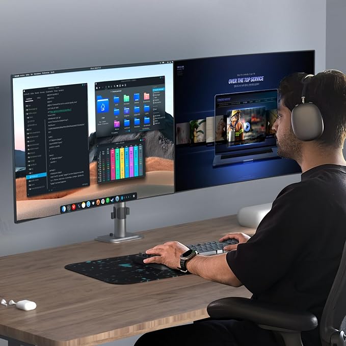 Suptek Dual Monitor Desk Mount, Adjustable Dual Monitor Arm for 2 Monitor Screens up to 38 inch, Extra Tall 15.75" Pole Monitor Stand for Desk, Holds up to 22 lbs,Silver(MD9442MS)