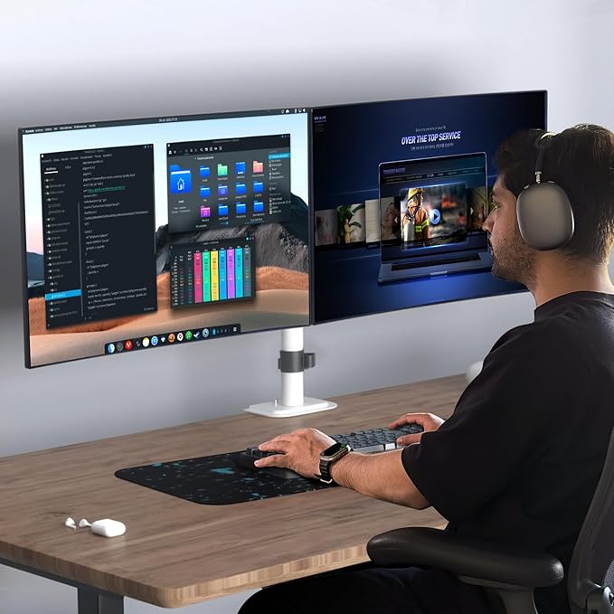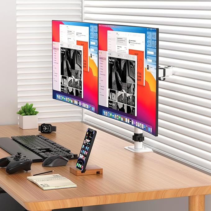 Suptek Dual Monitor Desk Mount, Adjustable Dual Monitor Arm for 2 Monitor Screens up to 42 inch, Extra Tall 15.75" Pole Monitor Stand for Desk, Holds up to 22 lbs,White(MD9442LW)