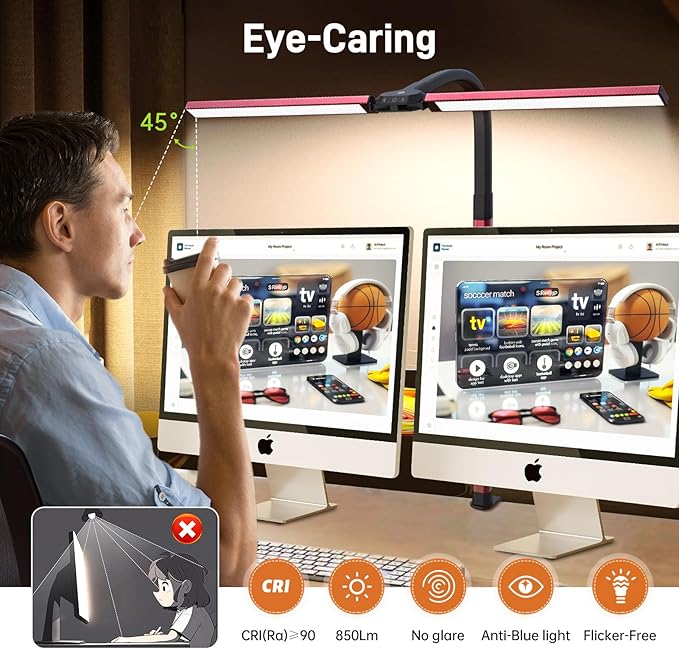 - 【Ultra Bright Wide & Light Induction Adjustment】Featuring a 31.5inch ultra-wide light strip, this desk lamp is suitable for both home and office desks, providing illumination across the entire workbench with a width of 71 inches. The high-efficiency 24W LED delivers evenly distributed light and ample brightness without flickering, making it ideal for use with large displays or workstations. When the ambient light becomes dim, the desk lamp automatically increases its brightness.