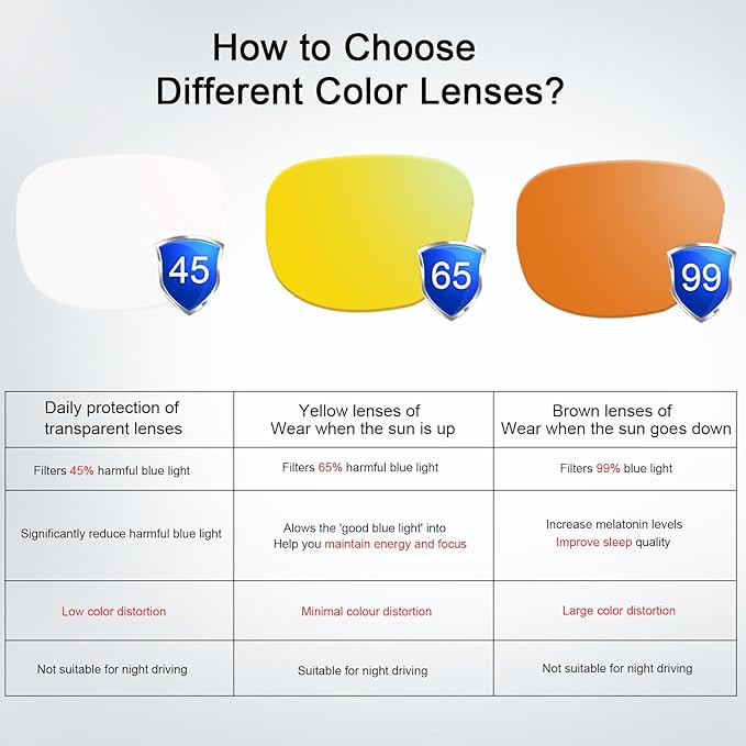 - 【Blue Light and UV Protection】45% Blue Block Rate. If you face computer/phone screens too long or over using your eyes for any reason,Alleviates visual fatigue and discomfort from long periods of web surfing, gaming and working under fluorescent lights with glare reduction.UV400 protection can block 100% of UVA and UVB radiation and fully protect against harmful ultraviolet rays.
