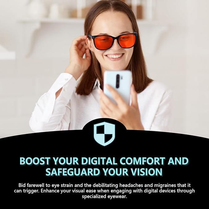 - Advanced Blue Light Filtering: Equipped with orange tinted lenses that are specially designed to filter out blue light, these glasses by SODQW are your first line of defense against digital eye strain. Whether you're working on a computer, binge-watching your favorite series, or immersed in an intense gaming session, your eyes will thank you.