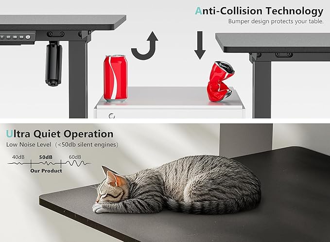 - Perfect Height, Made Simple: Set the desk so your elbows are at 90°, your screen’s at eye level, and your feet are flat