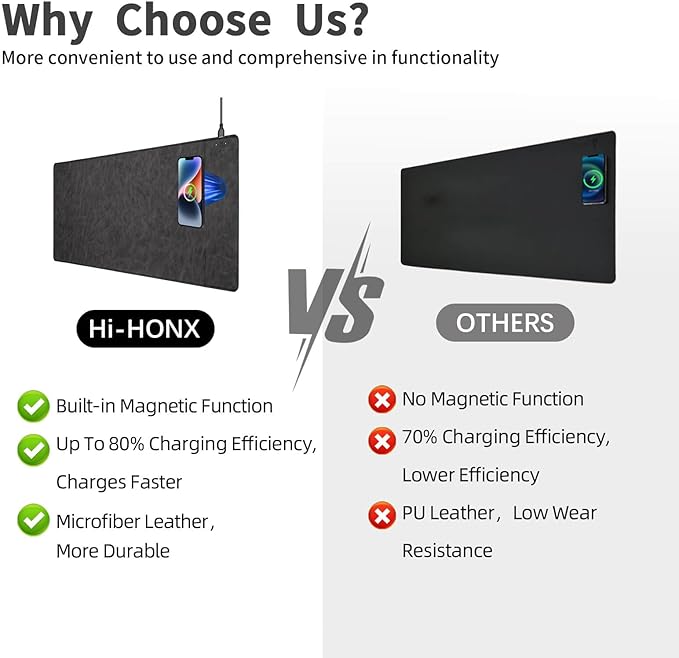 - Super Smooth Surface: Our wireless charging desk pad is crafted with premium microfiber leather fabric, offering a surface with an unparalleled smooth touch, enhancing the precision of your mouse control and elevating your user experience