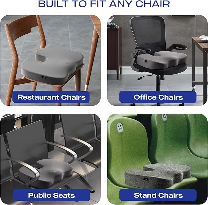Skechers Memory Foam Seat Cushion,Office Chair Cushion for Tailbone Pain Relief,Butt Pillow for Office Chair,Car seat Cushion,Computer Desk,Long Sitting Office Workers,and Car Drivers,Grey