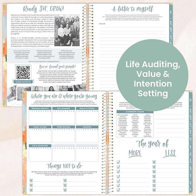 - THOUGHTFULLY DESIGNED FOR PERSONAL GROWTH: This agenda organizer includes life coaching worksheets and tools to help you bloom: a goal-setting page, weekly scheduling templates, annual habit tracker, monthly bill tracker, 13 note pages, inspirational quotes, monthly challenges, and more.