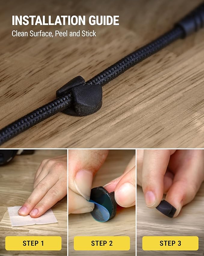 - Eliminate Cable Clutter: These adhesive cable management clips secure your charging cord in place, keeping them easily accessible and neatly routed. Perfect for your home office, desk, nightstand, car, or any space needing tangle-free cable organization